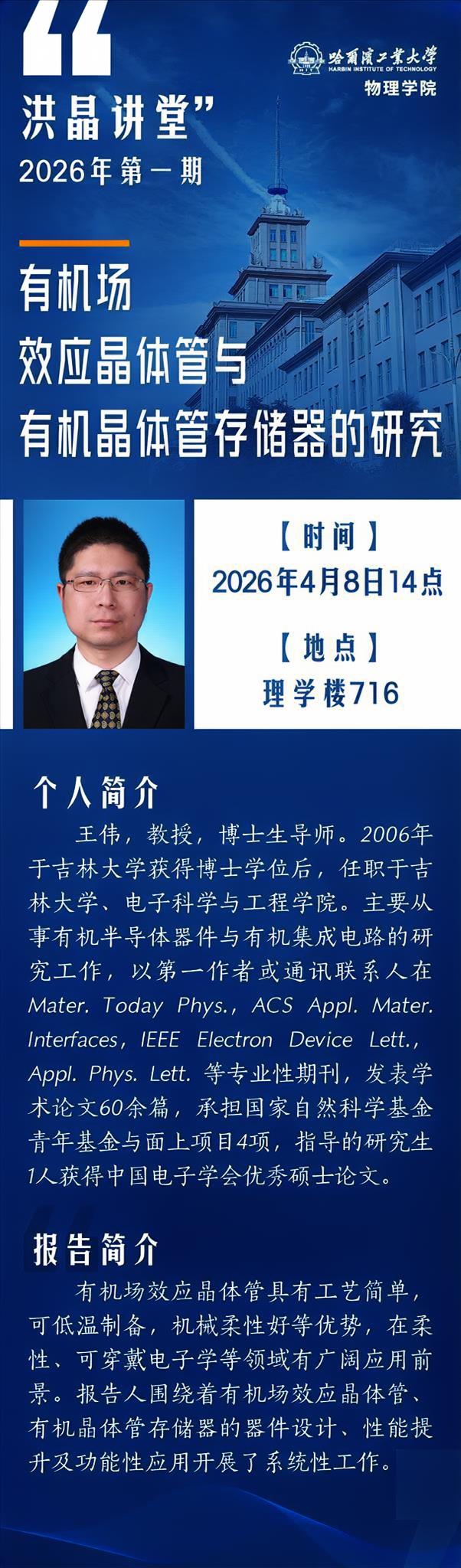 【洪晶讲堂2026年第1期】 有机场效应晶体管与有机晶体管存储器的研究
