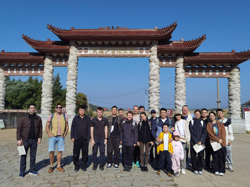 活动当日,香炉山秋色正浓,层林尽染,中外师生沿着登山步道结伴前行,自溪水十八弯到奇石峰峦,一路欢声笑语,气氛融洽。途中偶有师生结合山路坡度,轻松探讨起力学原理在日常行走中的应用,为徒步增添了一份独特的物理学科趣味。在徒步过程中,师生们不仅领略了北国风光魅力,更在相互鼓励与携手前行中,切身感受到团队协作的力量与温暖。轻松自然的氛围有效消融了语言与文化差异,促进了师生间的真诚交流与情感共鸣。