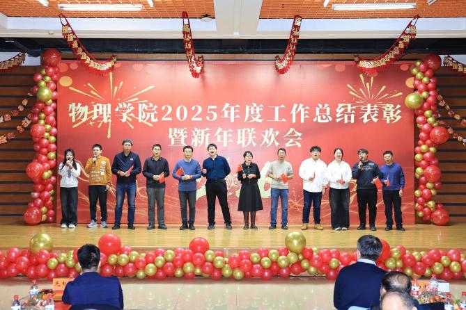 为总结过去一年工作成果,表彰先进集体与优秀个人,激励全院师生在新起点上再创佳绩,12月31日上午,物理学院在活动中心101举办2025年度工作总结表彰暨新年联欢会。学院在职教职员工70余人参加活动。
